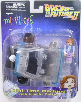 Prepare for the adventure of a lifetime, because once you reach the 88 MPH Temporal Displacement Threshold there's no turning back! This Minimates sized Time Machine replica recreates the iconic vehicle responsible for turning Doc Emmett Brown and Marty McFly's worlds upside down. Buckle your seatbelts, fire up your Flux Capacitors and discover what it really means to go back to the future again, with this hover time machine from the hit sequel. Featuring the modifications Doc Brown did on his trip to the future, folded up wheels for hover action and a Mr. Fusion for much safer travel than plutonium power.