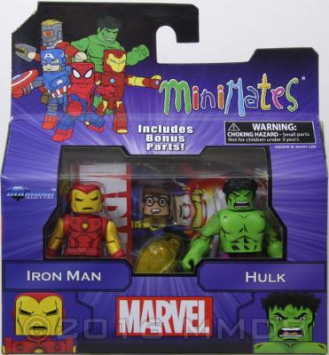 Hulk: An expert in gamma rays, Bruce Banner accidentally absorbed huge amounts of gamma radiation during a military weapons test. Now, when his anger or negative emotions reach a boiling point, he transforms into the green-skinned Hulk! Minimate transforms from Hulk to Banner!