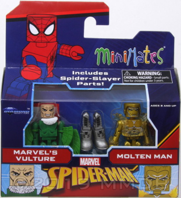 Molten Man: A lab assistant who helped develop the Spider-Slayers, Mark Raxton was covered in a liquid metallic alloy that gives off intense heat.