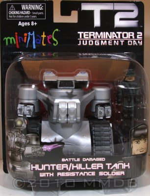 Prepare for the post-apocalyptic future with this Minimates-sized Hunter Killer Tank! This mini-vehicle features a rotating turret and guns that move. The included T-800 Endoskeleton Minimate fits inside to drive the tank on human exterminating expeditions. Know your enemy, join the resistance and rise up against Skynet and the machines!